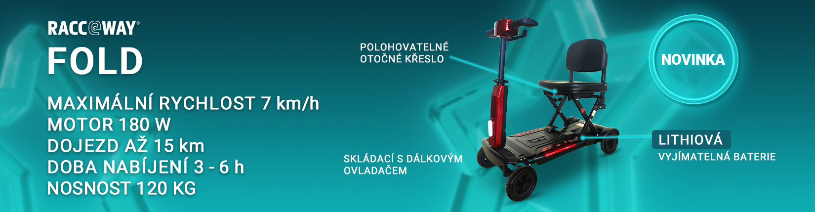 Rýchle info Showroom Slušovice Showroom Dobroměřice Prodejna Praha 6 Elektrický štvorkolesový vozík RACCEWAY® FOLD, vínový Skladom 4 a viac 1 261,50 EUR Do košíka